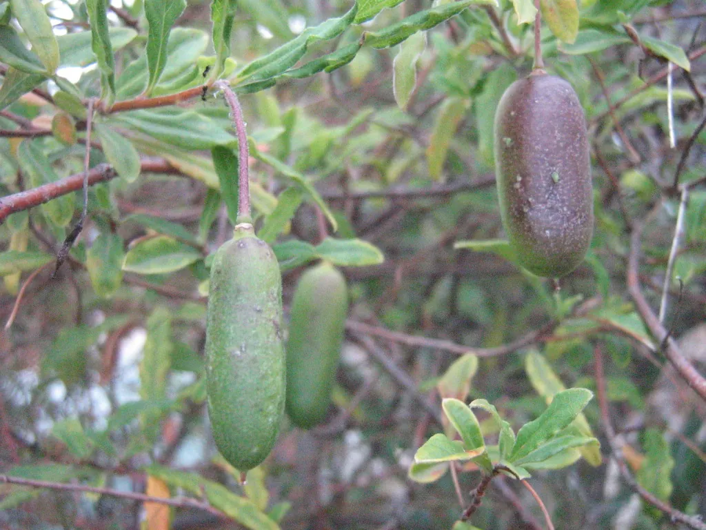 Fruit: Berry – slender, cylindrical, olive green becoming yellow when ripe, sometimes red. The berry is pulpy and seeds red-brown when ripe.