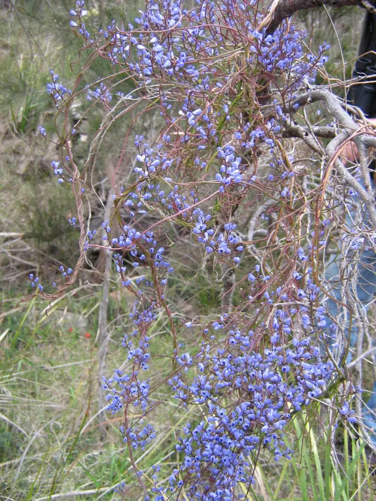 A decorative twiner which scrambles through other vegetation. Prefers light shade or partial sun and needs root protection. Will grow in a wide range of soil types and can withstand light to moderate frosts and dry periods. Resistant to Phytophthora cinnamomi. Early settlers used the root as an alternative to sarsaparilla.