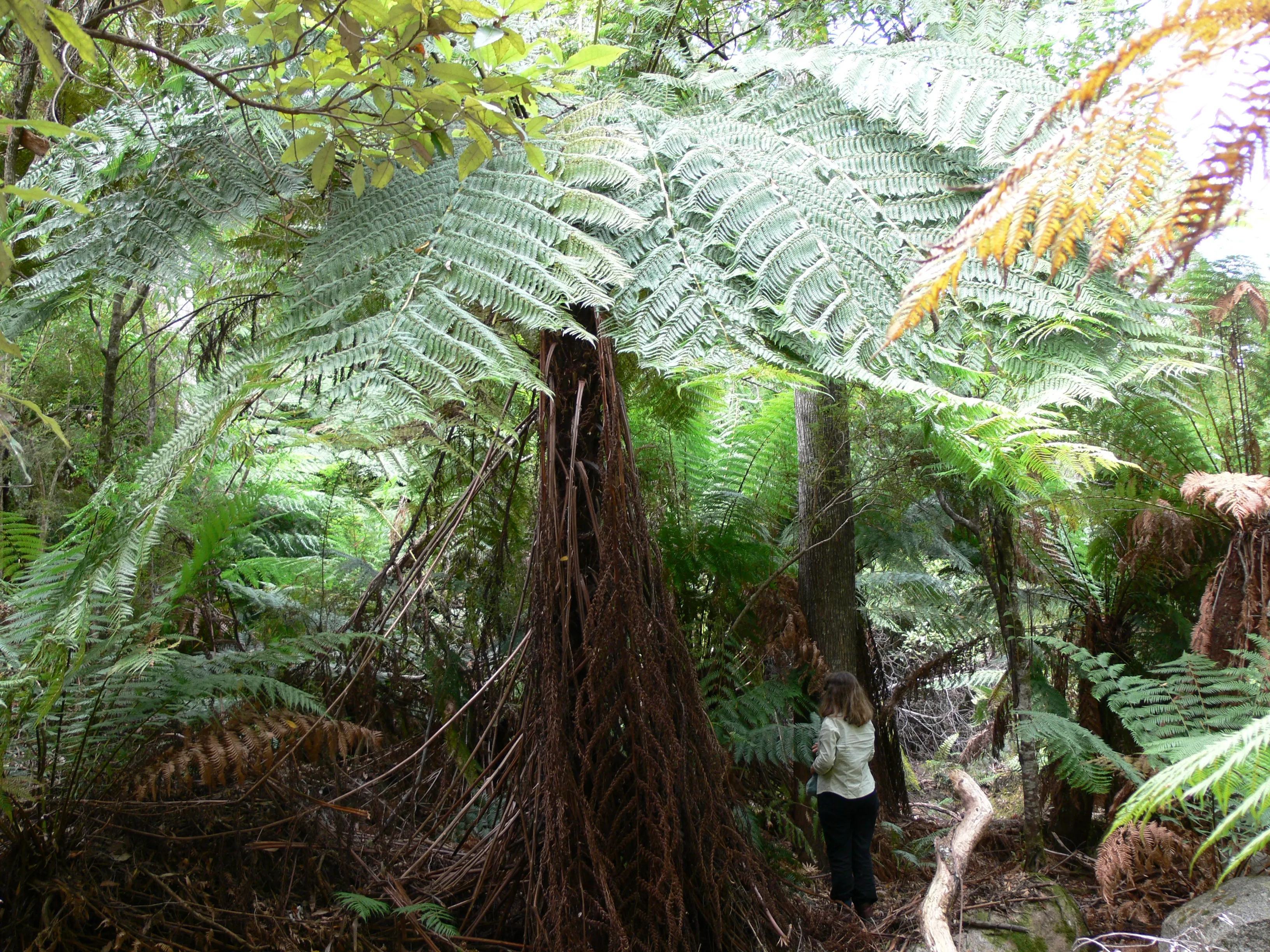Very rare in Tasmania known from near-coastal fern gullies in the south-east, north-east, central north and King Island. It is a natural hybrid of the Endangered Cyathea cunninghamii and the more widespread Cyathea australis, and will only be present where these two species co-occur. Multi-headed crowns are occasionally formed.