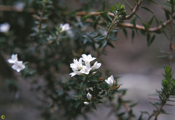 Flowers: White, bell-shaped, larger in floral parts than Epacris limbata and with hairy bracts.