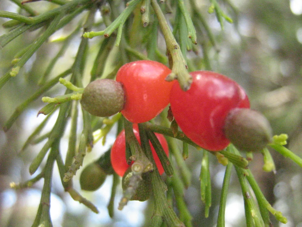 Form Description: Small pine-like tree; brown-ridged bark; dense fine yellow-green branches.