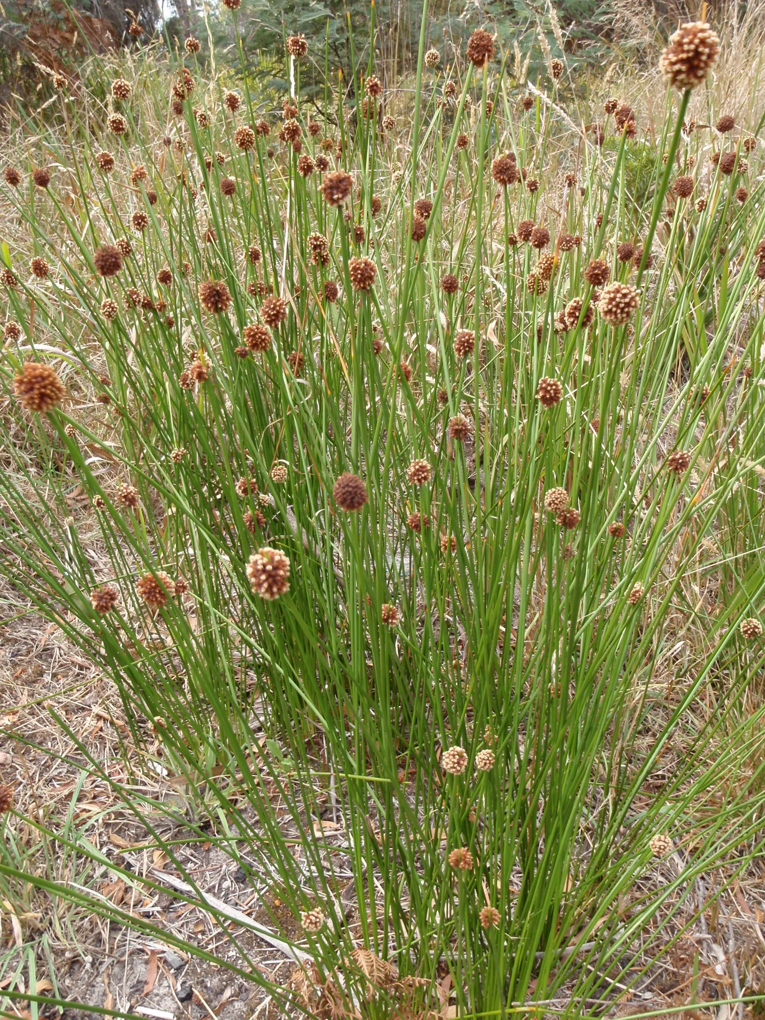 Form Description: Tufted sedge with dense erect green stems, cylindrical in cross-section.