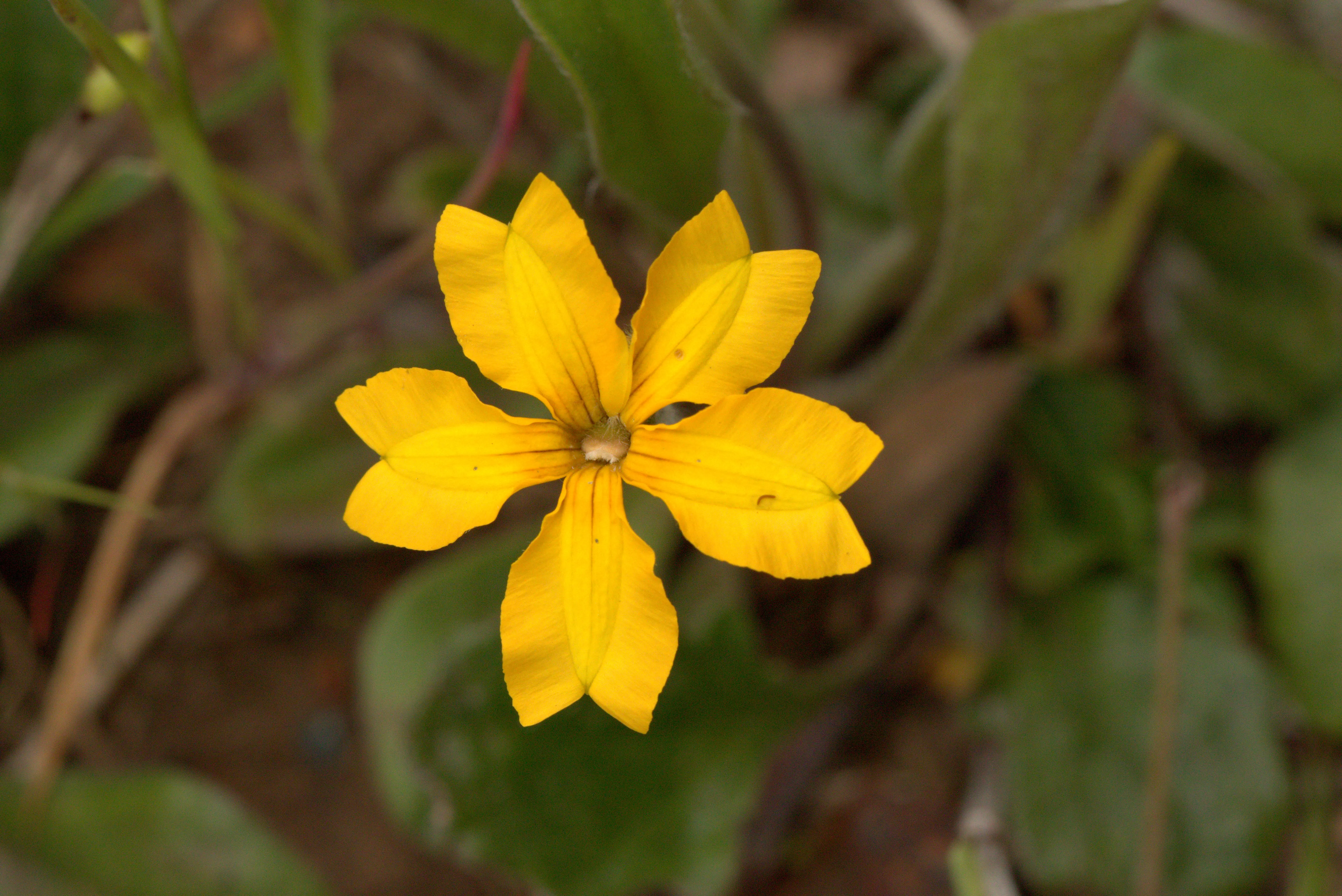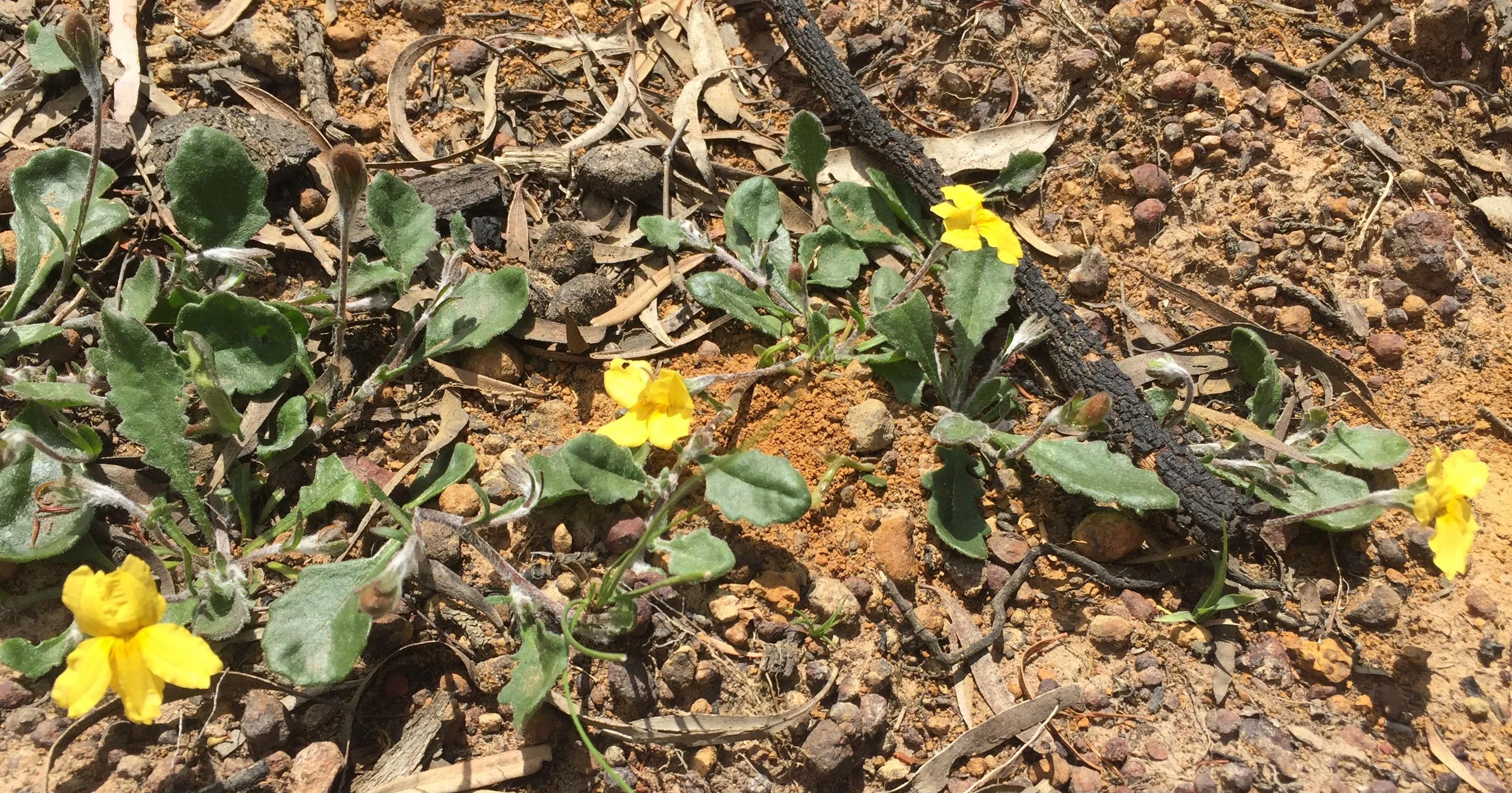 Flowers: Yellow irregular flowers, 2 cm across, with 5 winged petals.