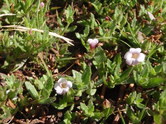 Flowers: Single in the leaf axils on stalks 1 to 2.5 mm long; corolla is white or pinkish-purple and the tube yellow.