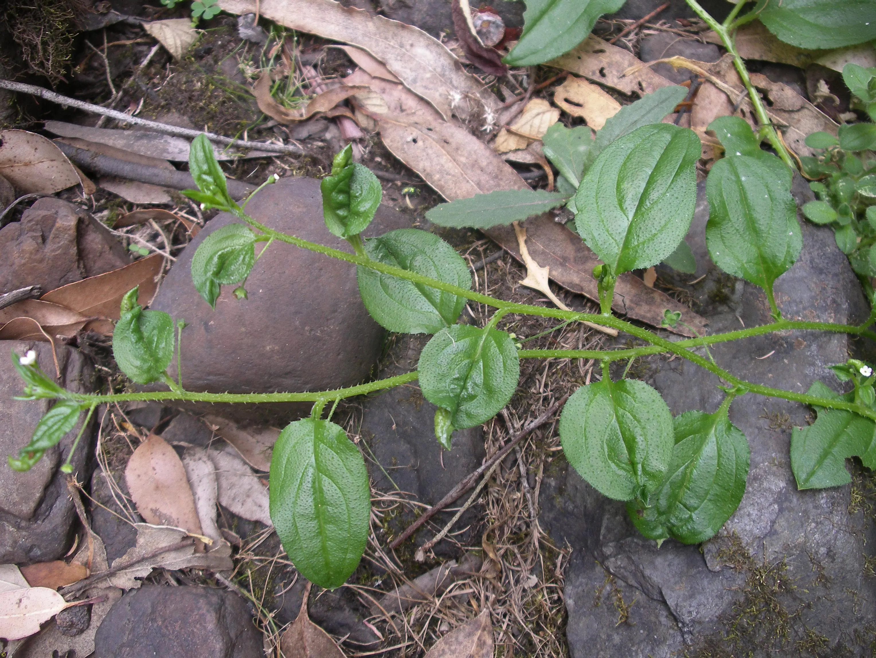 Form Description: Perennial herb with branched, straggling stems 100cm long or more, and egg-shaped leaves.