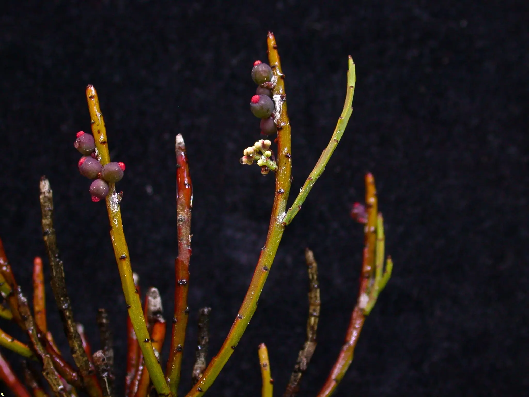 Form Description: Small shrub with rigid, coarse branches; leaves reduced to tiny scales.