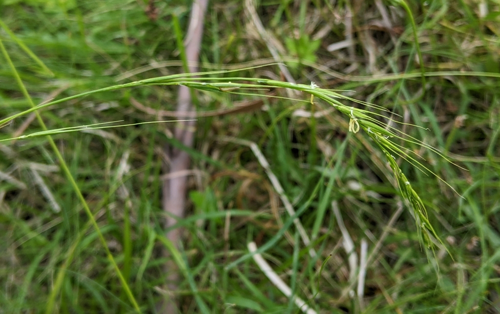 Form Description: Tufted perennial grass with underground stems. Leaves have long, coarse hairs and a prominent midrib on the lower surface, and a few scattered hairs on the upper surface.