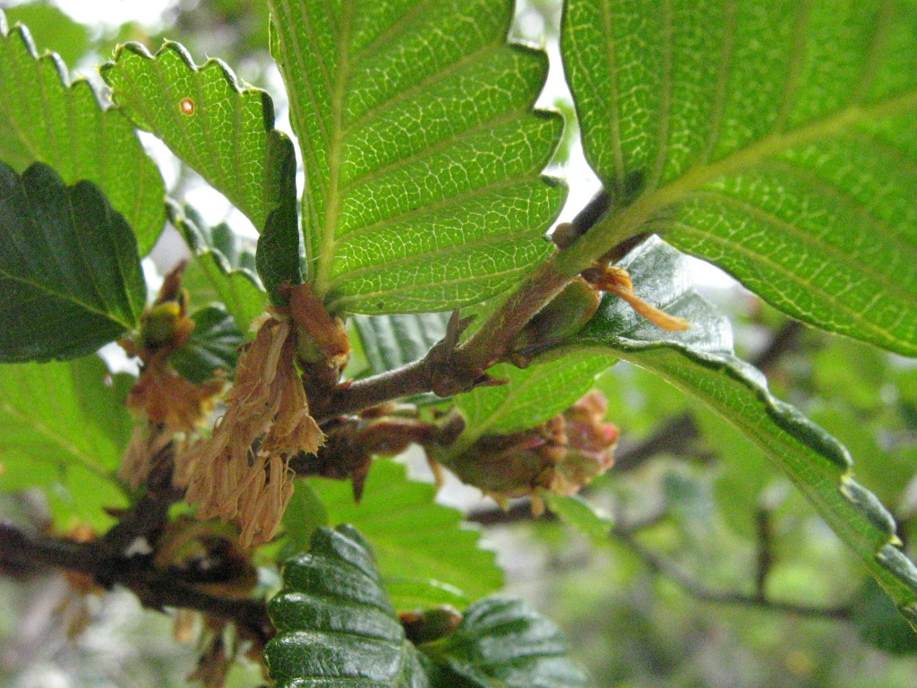 The winged seeds, ripe mid-March to May, are expelled from the prickly woody husks over several months. Those collected early in the season have better viability.