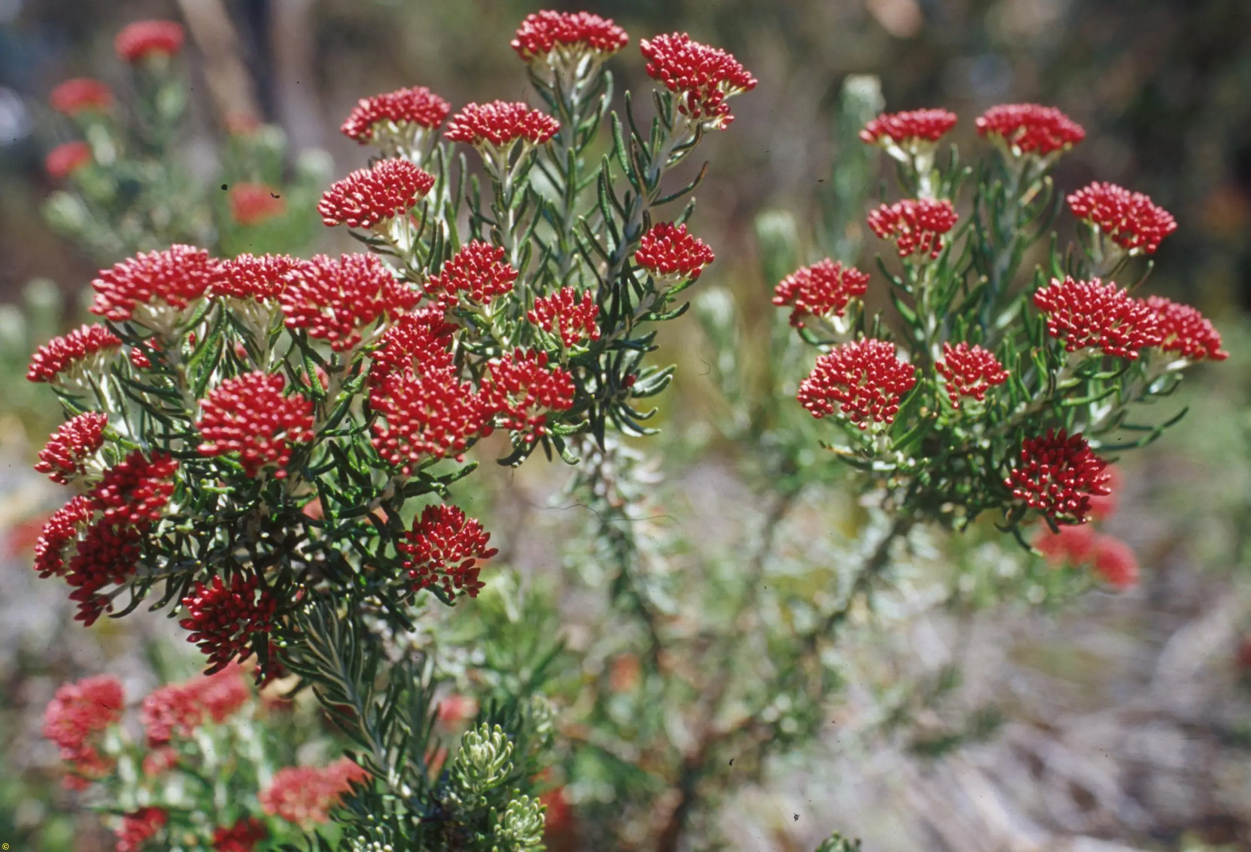 Flowers: Flower heads about 0.2cm across, inner bracts small, white; outer bracts pink to reddish.