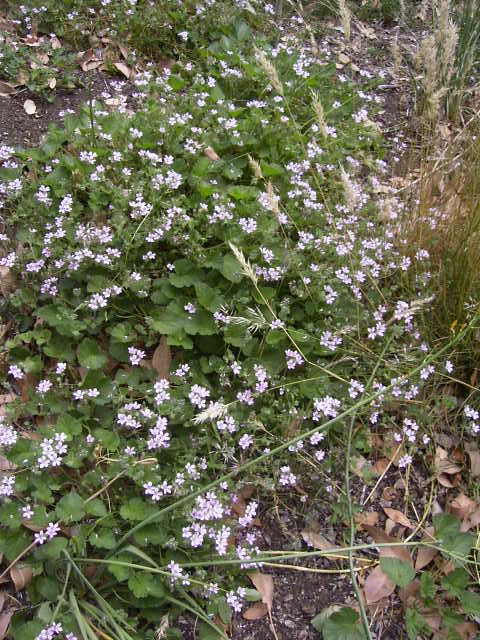 Flowers: Several in a stalked cluster, pinkish-white with reddish markings, 5 free petals.