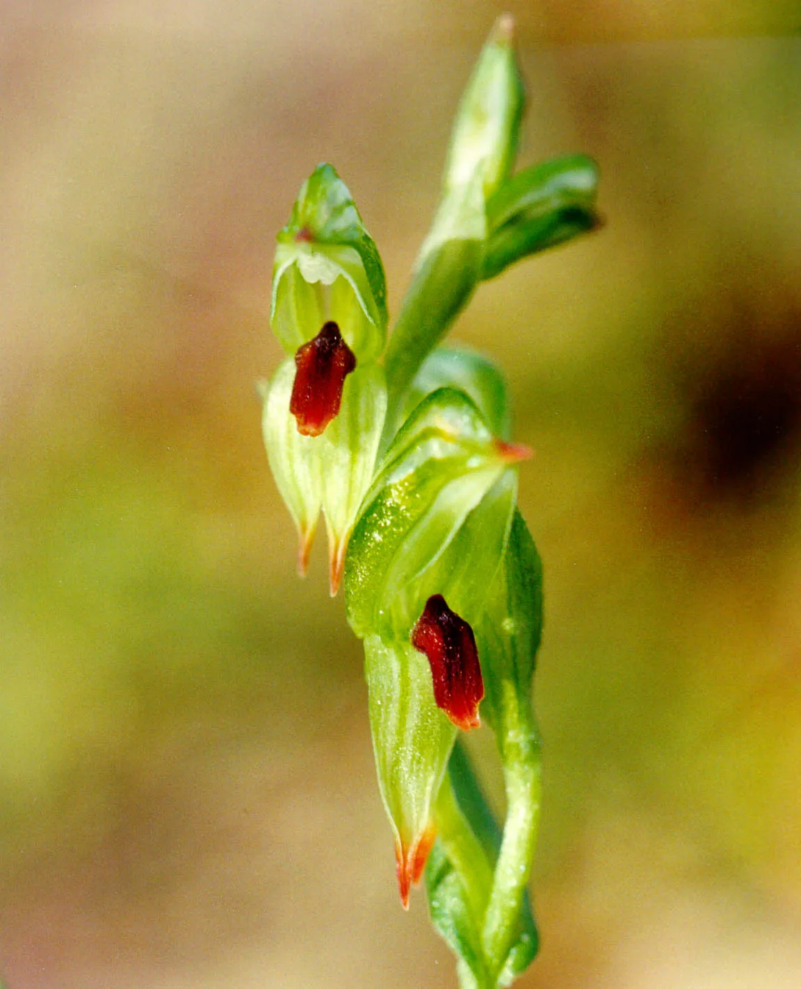 Orchid seeds are very minute yellow, brown or blackish dust-like particles. Orchid seeds are produced within a capsule that splits at maturity and releases thousands to millions of seeds. Dispersed by wind and water and only germinate following infection of the embryo by a suitable mycorrhizal fungus. Very few seeds become mature plants. For more information see Jones, Wapstra, Tonelli, Harris (1999): The Orchids of Tasmania.