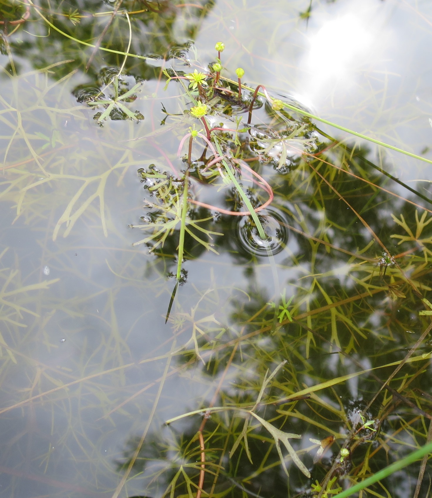 Form Description: Perennial herb growing in shallow water, with floating or submerged round and deeply divided leaves, and stoloniferous stems.