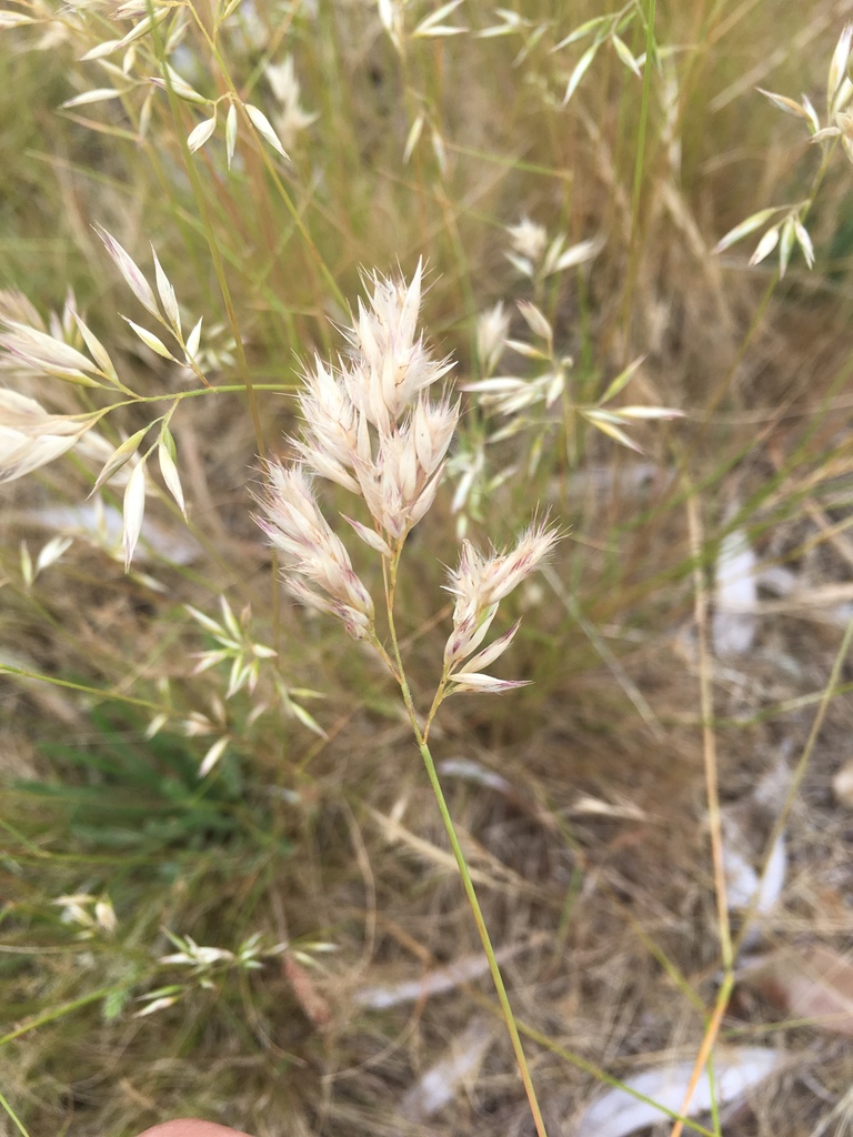 Form Description: Tufted, erect or bent perennial grass with hairless leaf sheaths and blades tightly in rolled.