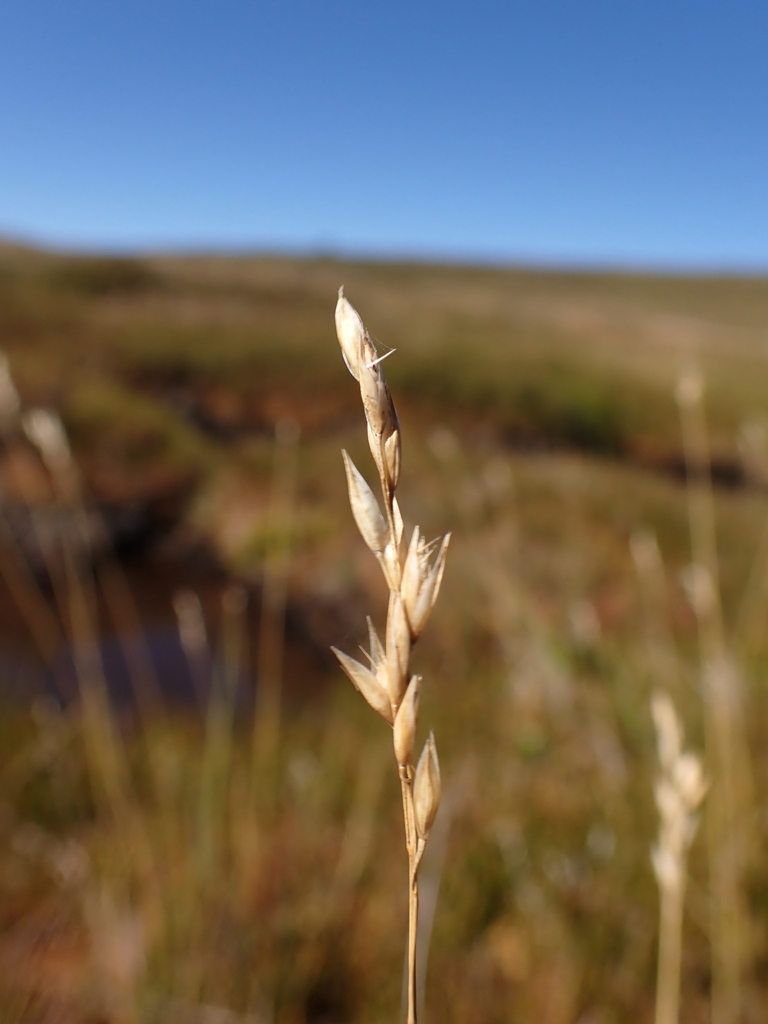 Form Description: Tufted grass with very rigid, shiny flowering stems. Similar to Rytidosperma nitens which has laxer, more hairy flowering stems and a less hairy bract; also similar to Rytidosperma nudiflorum which has larger spikelets and lateral lobes longer than the body of the bract.