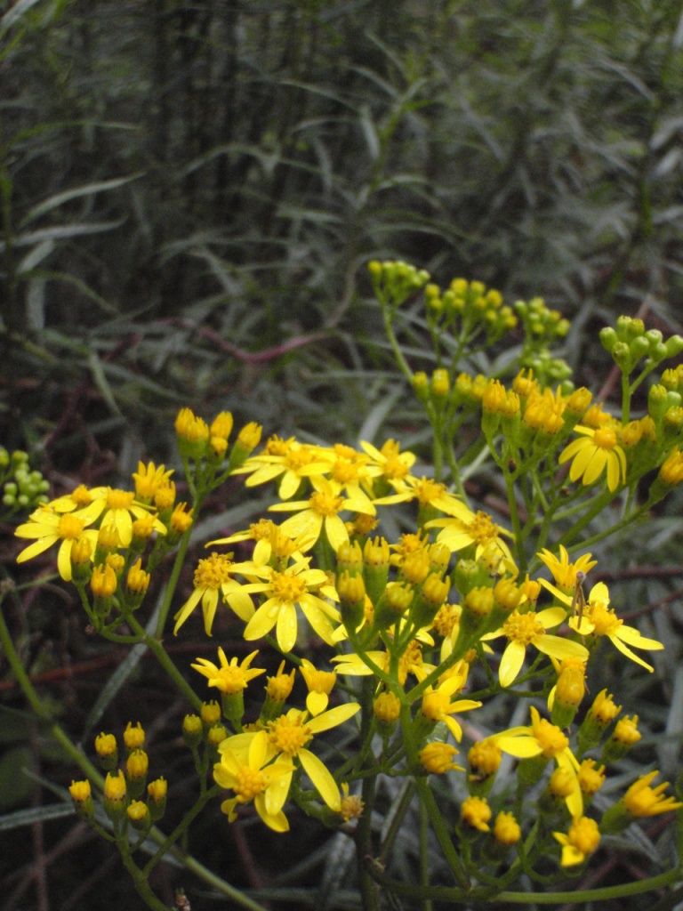 Flowers: Large fat clusters of golden flower heads at the ends of stems.