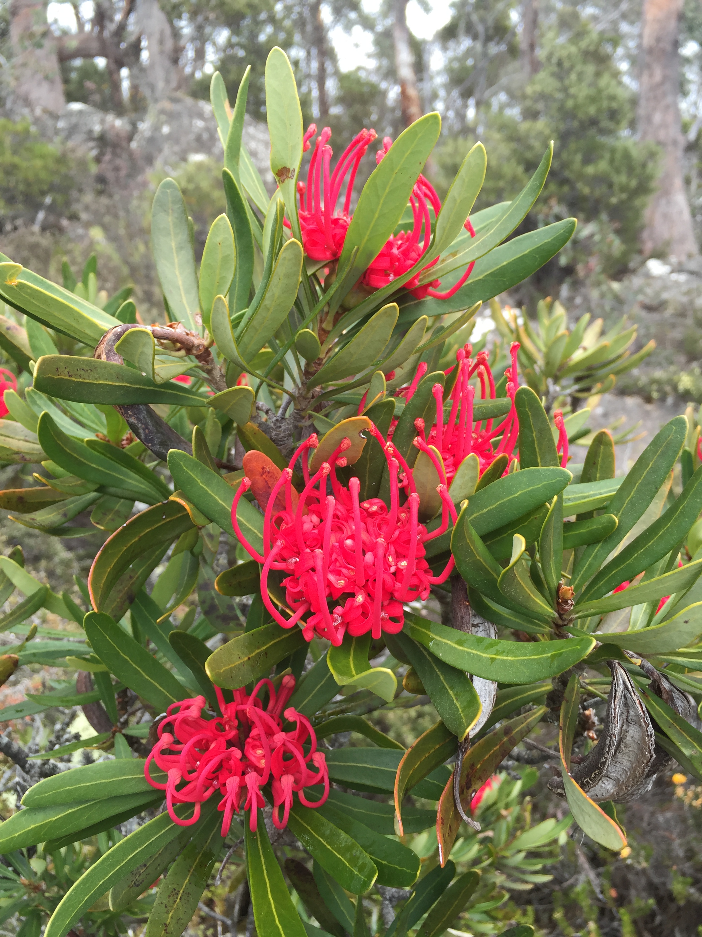 As with all other Proteaceae, waratahs have a root association with a particular fungus. To ensure growth, take soil from around the base of a growing waratah and mix it into the potting mix. (The old way was to put a rock from waratah country in the bottom of the pot). Beware of transplanting diseases!! Not easy to keep alive in cultivation in the south-east of the state. Best results at higher altitudes. Grows reliably in the north-west. Well-drained cool moist sites recommended. When growing naturally on clay, the clay will be dolerite or basalt derived. Bird attracting.