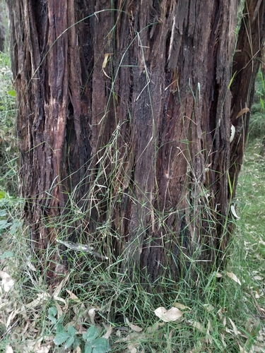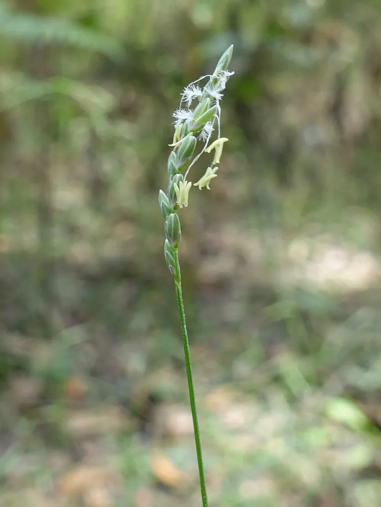 Form Description: Straggling grass with wiry stems up to 6m long which scramble over supporting vegetation. Leaves are up to 13cm long and rough on the upper surface, with a prominent midrib.