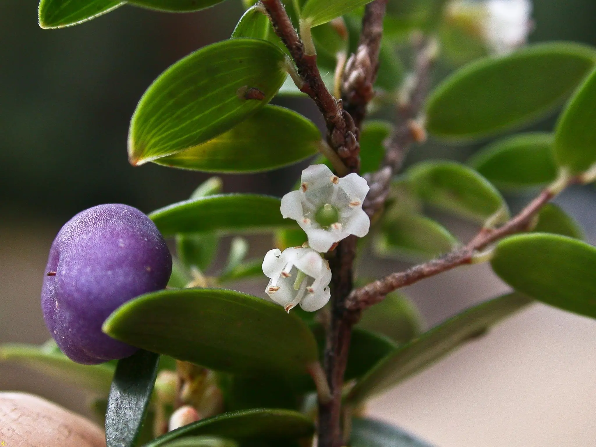 Fruit: Drupe – globular, 5mm in diameter, pale to dark blue, occasionally orange.