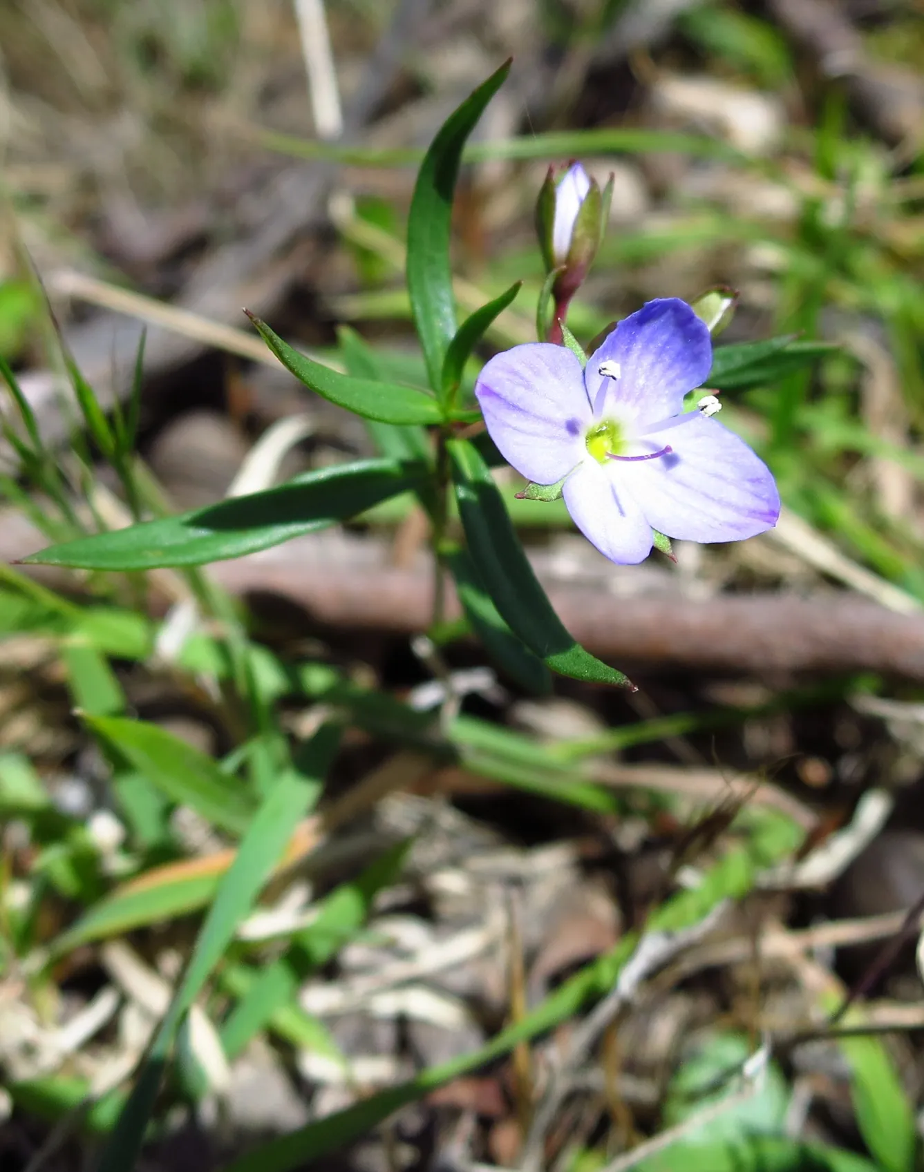 Flowers: Few pale blue flowers in upper leaf axils on stalks longer than the leaves.
